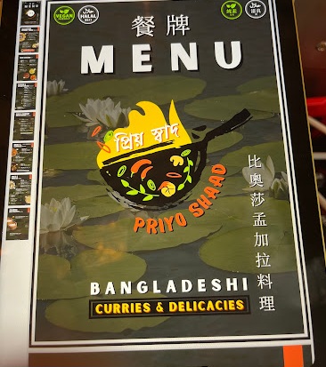 Priyo Shaad, an authentic Bangladeshi restaurant in Central, takes diners on a culinary journey through the diverse flavors of its homeland. The menu features standout dishes like Fuchka (pani puri), Beguni (deep-fried eggplant pakora), Aloo'r Chop (potato cutlet with boiled egg), Patla Dal (yellow lentil curry/soup), and Beef Bhuna. Each item showcases the vibrant traditions of Bangladeshi cuisine, offering patrons an authentic taste of the country's culinary heritage.