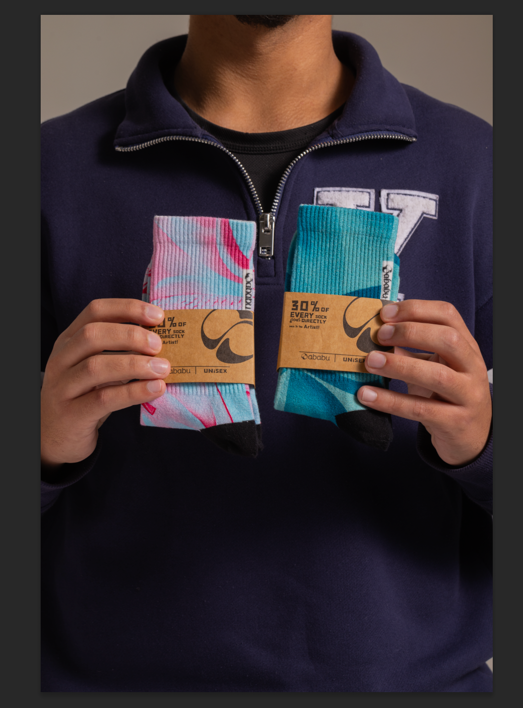 At Sababu, each pair of our socks is crafted with pure, non-toxic ingredients, ensuring safety for you and the planet. But it doesn't stop there. We're committed to providing fair compensation to our talented artists, empowering them to thrive through their creativity.